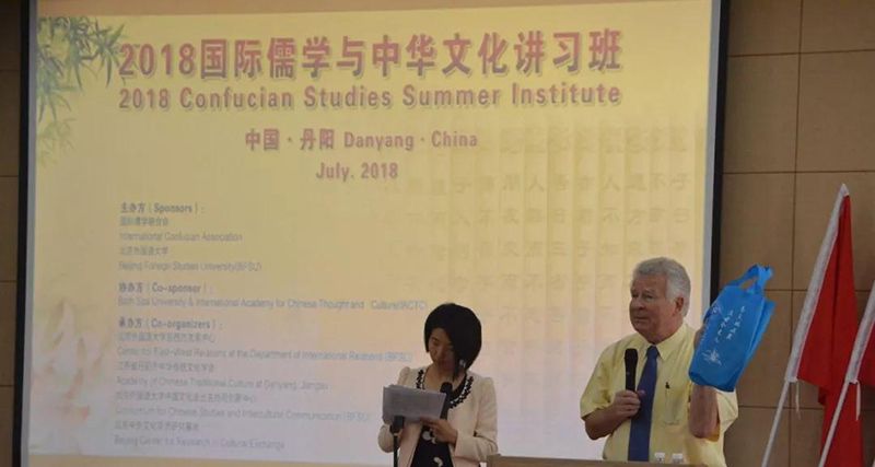 2018国际儒学与中国文化讲学班7月16日在丹阳开班。来自中外大学的五十多位专家学者聚会丹阳,共同参加讲习班开幕式。国际儒学联合会副会长、世界儒学文化研究联合会会长安乐哲教授等20多位美国、英国汉学专家参加这次为期两周的研讨活动。丹阳市副市长贺云华在开班致辞中说,文化的变迁需要不断创新阐释和翻译。她希望通过此次活动,让西方国家更加了解中华的文化,让中国文化能够在全世界更好地、更准确地得以传播开来。