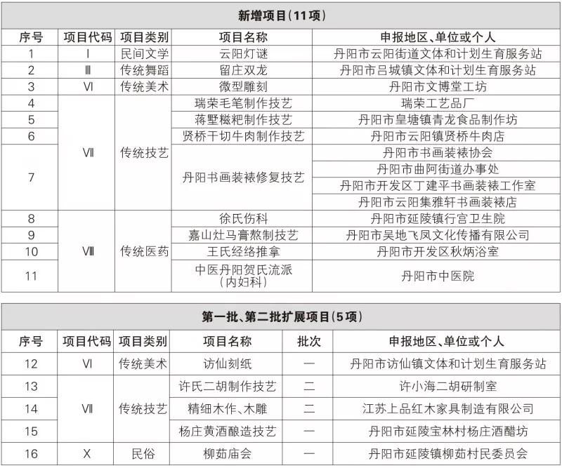 7月27日,市人民政府办公室印发通知(丹政办发〔2018〕182号)公布第三批丹阳市级非物质文化遗产名录(共11项)和扩展项目(共5项)。通知要求各级单位按照相关法规和有关条件,认真贯彻落实“保护为主、抢救第一、合理利用、传承发展”的非遗保护指导方针,做好非物质文化遗产名录项目的保护、传承和管理工作。