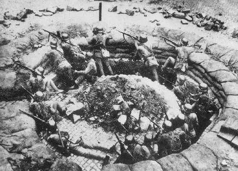 “此人从血泊中猛然站起,两眼死死盯住藤冈,藤冈一等兵从他射来的眼光中,感到一种说不出的威严……藤冈倾全身之力,举起刺刀,向高大的身躯深深扎去,这个高大的身躯像山体倒塌似的轰然倒地。”