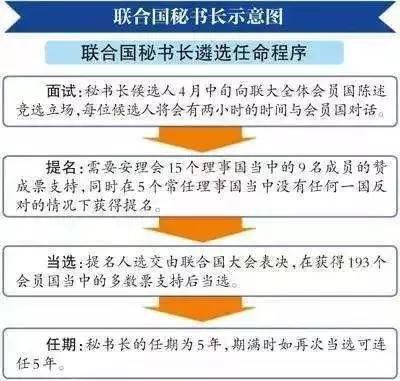 首先,秘书长的产生,必须要五大常任理事国的一致点头同意,然后在安理会获得九票以上通过提名,再经联合国大会简单多数通过,秘书长才能当选。其中最难的一关,就是得到手握否决权的5大理事国一致通过,因为安理会的15个成员国,哪怕只有一个常任理事国不同意,哪怕是14:1的投票结果,这个秘书长也得黄。