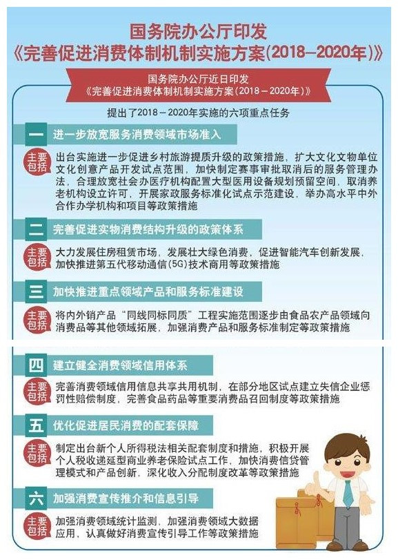 日前,国务院办公厅印发《完善促进消费体制机制实施方案(2018-2020年)》,部署加快破解制约居民消费最直接、最突出、最迫切的体制机制障碍,进一步激发居民消费潜力。