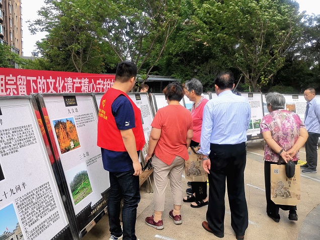 活动现场,博物馆工作人员在新民中路社区南门花园悬挂横幅,将精心制作的丹阳各级文物保护单位宣传展板摆放在小区花园休憩区内,向广大社区居民详细地介绍了丹阳121处文物保护单位,充分展示了丹阳丰富的文化遗产资源,让广大社区居民在家门口就能感受到文化遗产的魅力,大家对我市丰厚的文化遗产资源大加赞赏!博物馆工作人员还向过往群众宣讲有关文物保护和文化遗产的相关知识并发放文保书籍、彩页和宣传品800余份。