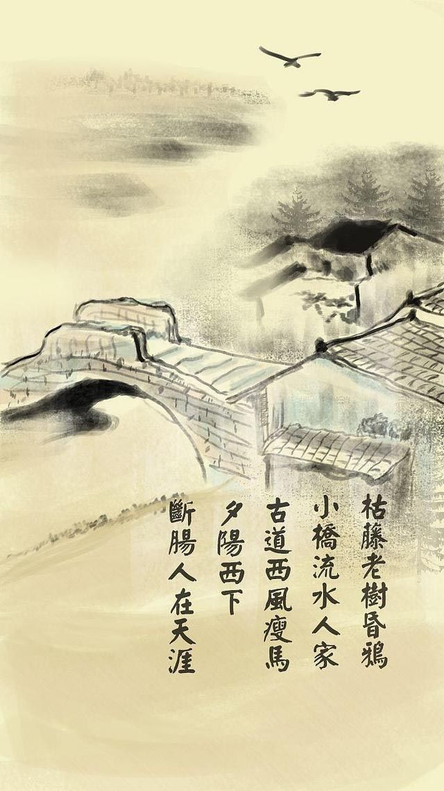 其一,就是因为这首小令简简单单,却切入人心,写尽天涯沦落人的漂泊之苦。这首小令前半段描述了9个意象,并列排列,无论哪一个单拿出来都能让人感受到萧瑟悲凉之意,更不必说并列组合了。而在后半段,一句“夕阳西下,断肠人在天涯”,写尽游子沦落之悲,漂泊之苦,更容易取得共鸣。